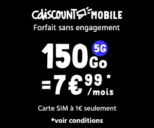 Auchan Telecom propose ce forfait 5G illimité 300Go sur réseau Bouygues à 13€ par moisappels/sms/mms illimités* depuis France, Europe, DOM300Go de data sur réseau 5G Bouygues – débit réduit au delà34Go de data en 4G depuis Europe/DOM12,99€/mois sans limite de duréesans engagementcarte SIM 1€ à la