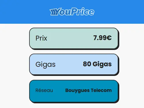 🔖 Youprice (Bouygues), forfait illimité/80Go à 8€/mois