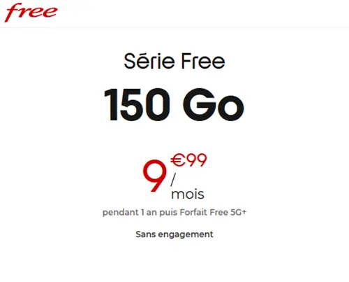 Youprice propose ce forfait illimité 80Go sur réseau 4G Bouyguesappels, sms, mms illimités* depuis la France, Europe dont Monaco et DOM80Go sur réseau 4G Bouygues, payant au-delà / option 5G +5€/mois13Go depuis Europe, Monaco et DOM7,99€/mois sans limite de duréesans engagementAppels / SMS Wifi (VoW
