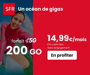 La Poste Mobile propose ce forfait 5G sur réseau Bouygues avec 300Go et itinérance incluse en Suisse, Andorre et 10Go en Algérie, Maroc et Tunisieappels/sms/mms illimités* depuis France, Europe, DOM, Suisse et Andorreappels illimités de France vers 50 destinations300Go de data sur réseau 5G Bouygues