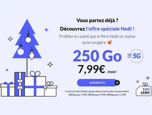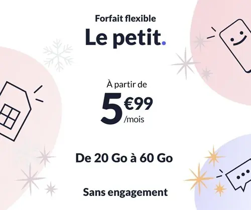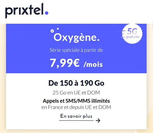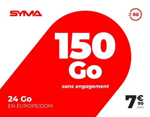 Youprice propose ce forfait illimité 150Go sur réseau SFR à 7,99€ par moisappels, sms, mms illimités* depuis la France, Europe dont Monaco et DOM150Go sur réseau 4G SFR, payant au-delà10Go depuis Europe, Monaco et DOM7,99€/mois sans limite de duréesans engagementAppels / SMS Wifi (VoWIFI) et appels
